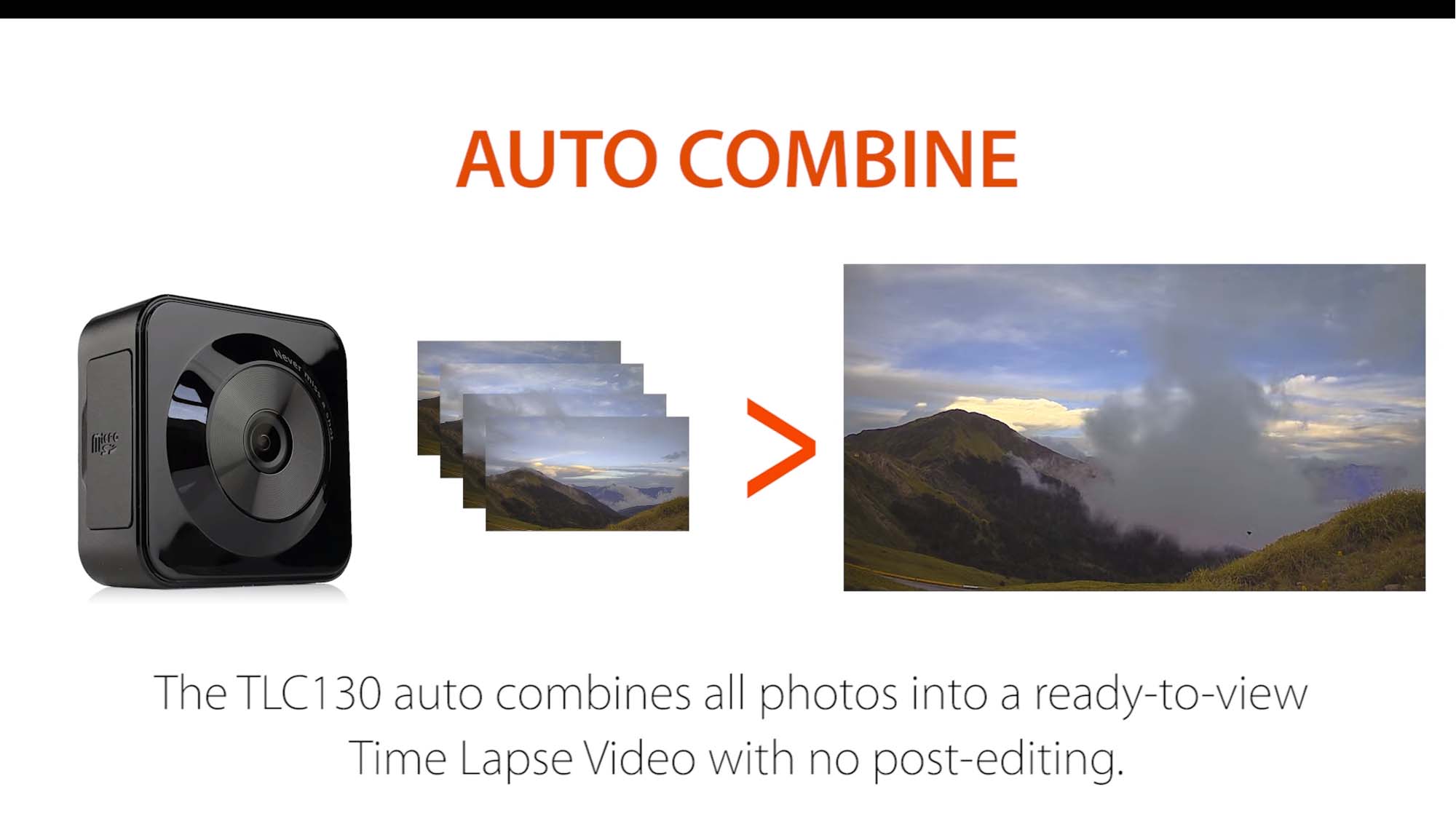 La fotocamera TLC130 è abbastanza piccola, abbastanza intelligente e abbastanza potente da cogliere i grandi momenti. Mentre lo scatto di foto TIME LAPSE offre fantastici video del tuo viaggio complessivo, la nuovissima funzione di STEP VIDEO mette in risalto i dettagli dei momenti salienti del viaggio quando ti immergi in uno splendido scenario lungo il percorso.