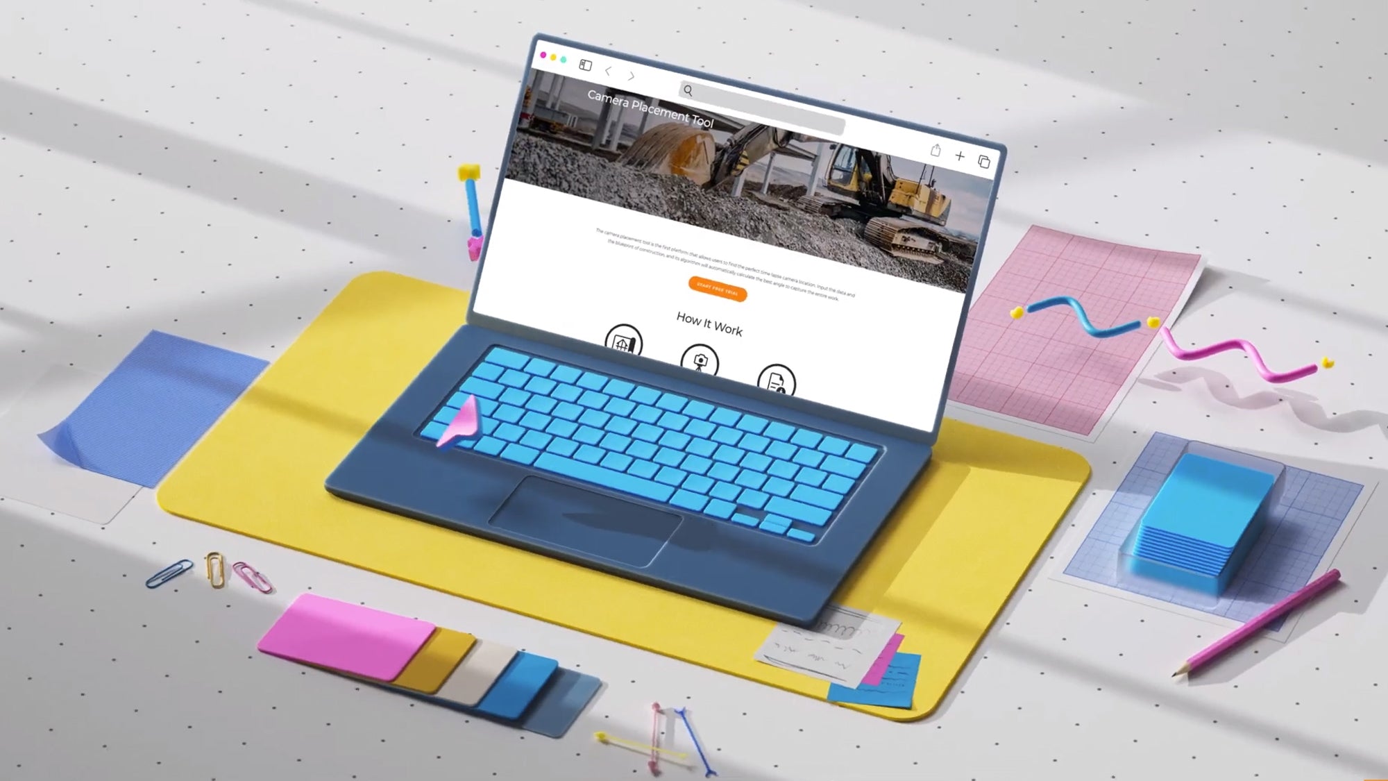 カメラ配置ツールは、最適なタイムラプスカメラの位置を探すことができる初めてのプラットフォームです。データと工事の設計図を入力すると、アルゴリズムが作品全体を撮影するための最適なアングルを自動計算します。