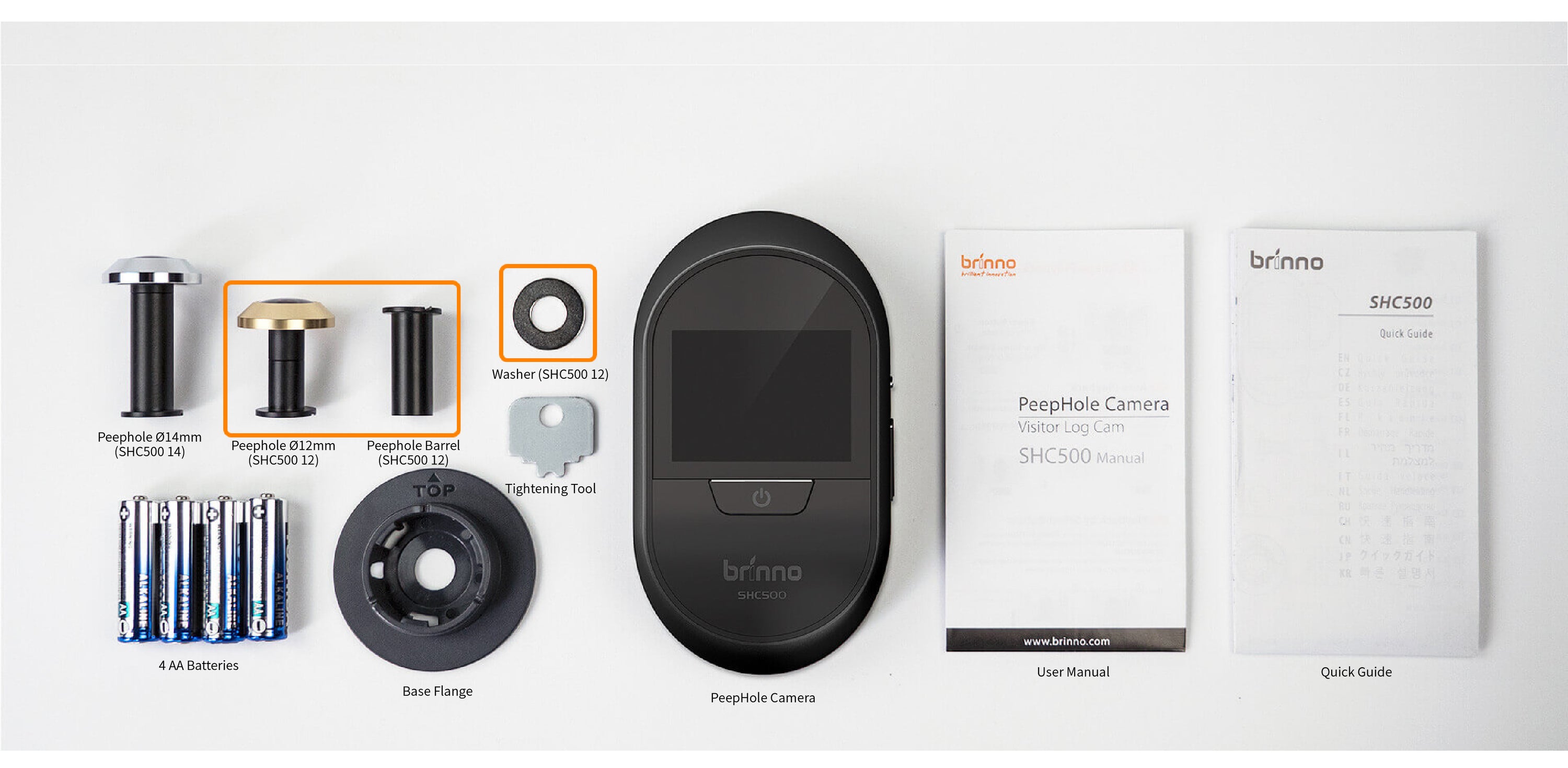 | 內容 | 窺孔、底座法蘭、緊固工具、4AA 電池、用戶手冊 | |